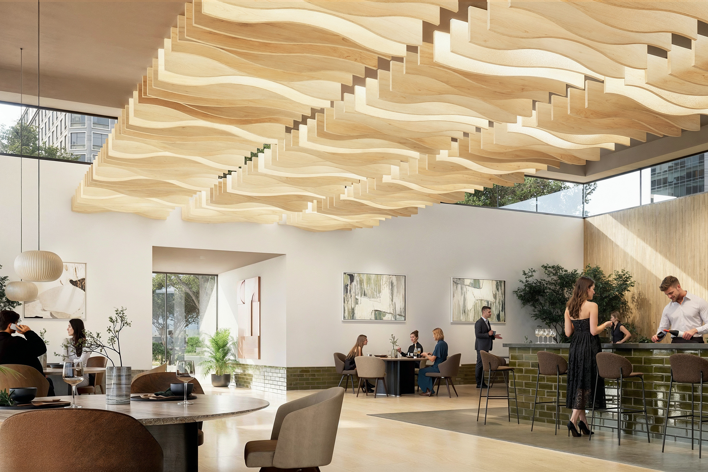 Eco-friendly acoustic absorption with unlimited flexibility.